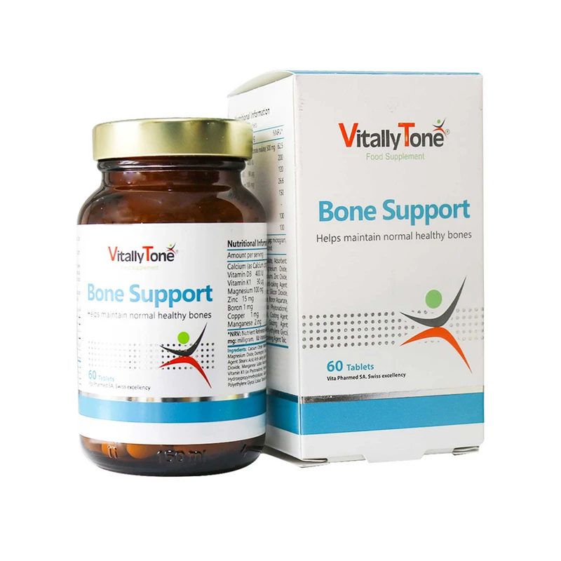 قرص بون ساپورت ویتالی تون یک مکمل ایده آل حاوی کلسیم سیترات، ویتامین D3، ویتامین K1، منیزیم، زینک، بورون، مس و منگنز جهت حفظ سلامت استخوانها است. کلسیم موجود در این محصول از برند ویتالیتون از نوع سیترات بوده که دارای کمترین عوارض کلیوی و گوارشی است. علاوه بر آن برای پیشگیری از پوکی و شکستگی استخوان استفاده میشود.