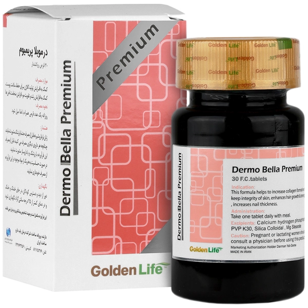 قرص درموبلا پریمیوم گلدن لایف حاوی ویتامینها و مینرال مورد نیاز بدن است که به طور خاص برای بهبود سلامت پوست، مو و ناخنها طراحی شده است. این محصول با افزایش تولید کلاژن به حفظ سلامت پوست کمک میکند و افزایش طراوت و شادابی ظاهری را به همراه خواهد داشت. درموبلا پریمیوم به عنوان یک راهکار جامع برای تقویت بافتهای پوستی و رشد موها است.
