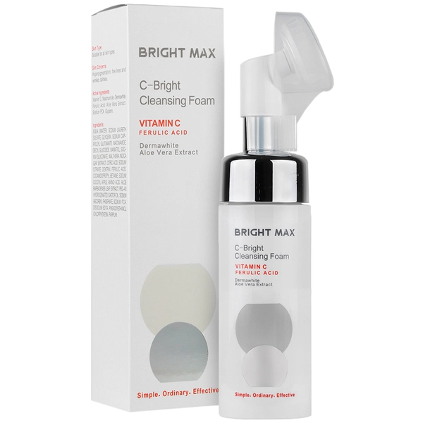 ویتامین ث موجود در فوم شستشو C برایت برایت مکس با ممانعت از عملکرد آنزیم تیروزیناز از سنتز ملانین جلوگیری می‌کند و باعث بهبود لک‌های پوستی می‌شود. با تحریک سنتز کلاژن افزایش الاستیسیته پوست را به دنبال دارد. از آن سو حضور فرولیک اسید به عنوان یک ترکیب آنتی اکسیدان و ضد چروک، باعث هم افزایی اثرات ویتامین سی شده و از آسیب‌های سلولی ناشی از نور ماورا بنفش پیشگیری می‌کند. یکی دیگر از کارایی‌های فوم شستشوی صورت ث برایت به علت حضور نیاسینامید است. چرا که این ترکیب به ترمیم لایه محافظ پوست کمک نموده و با خواص روشن کنندگی و ضد قرمزی باعث محو شدن علائم آکنه و هایپرپیگمانتاسیون می‌شود.