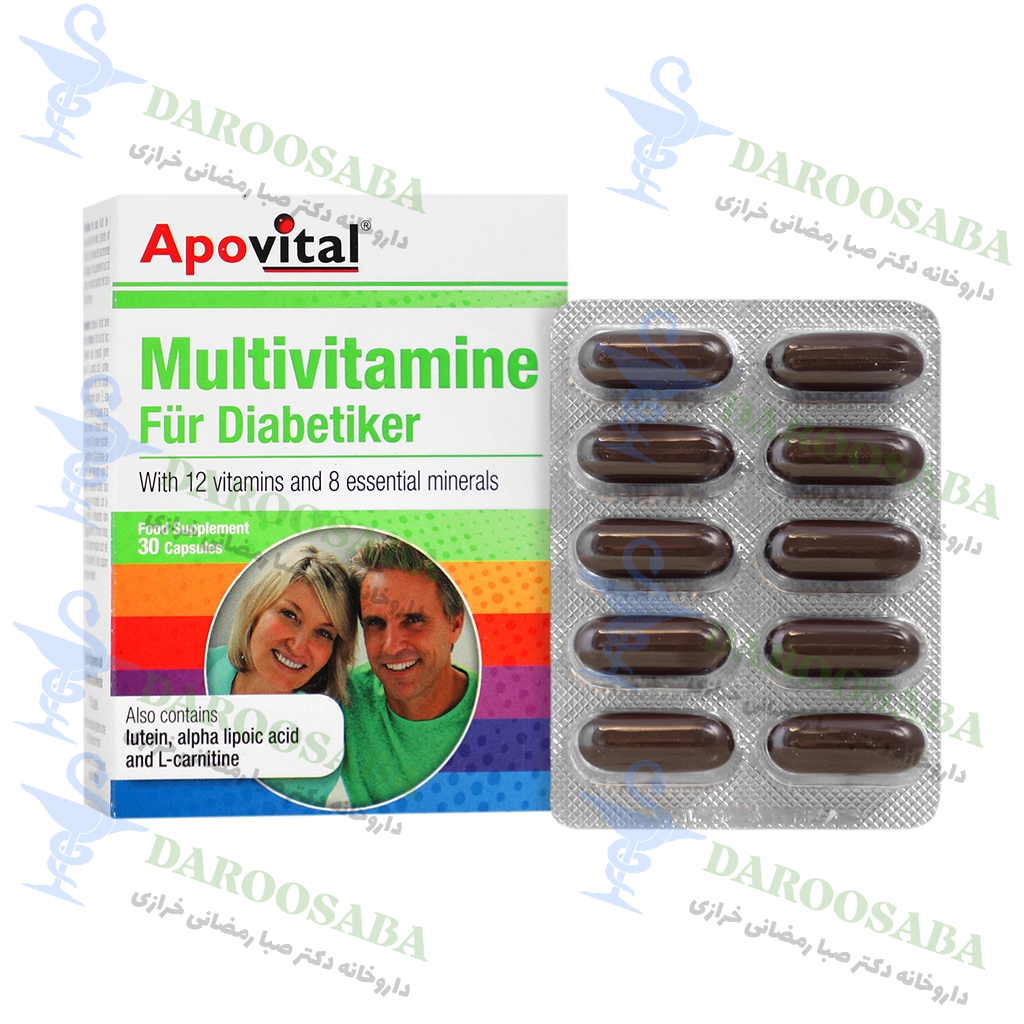 کپسول مولتی ویتامین افراد دیابتی آپوویتال تحت لیسانس یورو او تی سی فارما آلمان جهت تامین ویتامین و املاح معدنی افراد مبتلا به دیابت فرموله و تولید شده است. این محصول به دلیل وجود کروم، منیزیم و کارنیتین به کنترل بهتر قند خون کمک میکند و به جبران ویتامین ب 12 از دست رفته ناشی از مصرف متفورمین میپردازد. از طرفی این قرص مولتی ویتامین با خاصیت آنتی اکسیدانی و ضد التهابی خود در تقویت سیستم ایمنی و همچنین کمک به تنظیم و کاهش قند خون، کاربرد دارد. کپسول آپوویتال برای افراد دیابتی، با داشتن ترکیبات موثر مانند آلفا لیپوئیک اسید، کروم و سلنیوم، دانه سویا و لستین سویا، نه تنها در کمک به بهبود سیستم ایمنی، عصبی، گوارشی و بینایی کارساز است، بلکه در کاهش قند خون و تنظیم آن نیز سودمند خواهد بود.