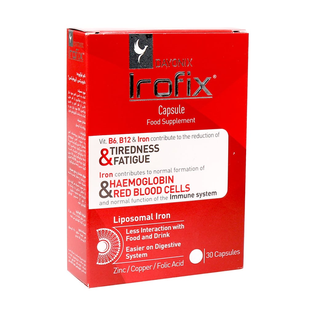 کپسول آیروفیکس دایونیکس فارما به ساخت گلبولهای قرمز و تامین آهن مورد نیاز بدن کمک نموده و از کم خونی ناشی از فقر آهن جلوگیری مینماید.