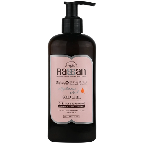 لوسیون صورت و بدن رایحه گود گرل راسن، تامین رطوبت طولانی‌مدت پوست تقویت خاصیت ارتجاعی پوست با ترکیبات مغذی مانند شی باتر و آلانتوئین لوسیون صورت و بدن راسن با رایحه گود گرل، کاهش خشکی و پوسته‌پوسته شدن پوست