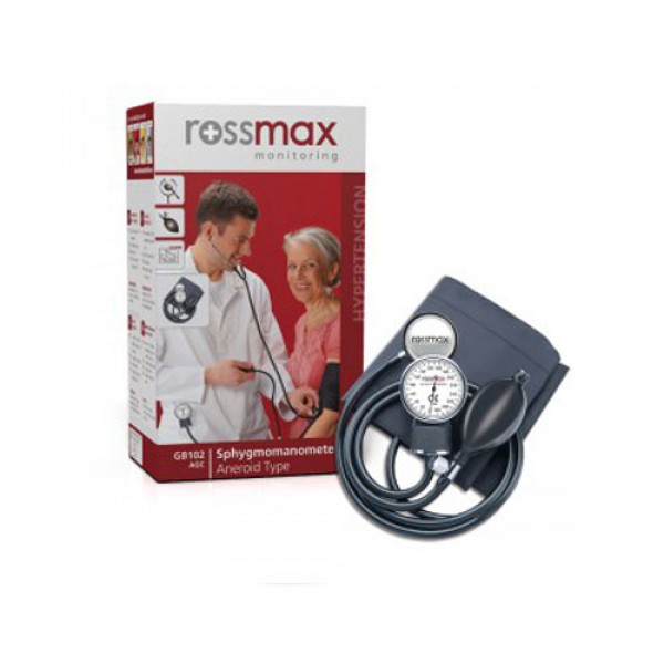 فشارسنج عقربهای یا فشارسنج آنالوگ «رزمکس» (Rossmax) مدل «GB102» وسیلهای برای اندازهگیری فشار توسط شنیدن صدای نبض است. با وجود گسترش فشارسنجهای دیجیتال، اکثر پزشکان، پرستاران و حتی بعضی از مردم از فشارسنج عقربهای استفاده میکنند. شاید دلیل این امر دقت بالایی است که اندازهگیری فشار به روش قدیمی دارد. فشارسنج رزمکس از چهار قسمت کاف دور بازو، پوآر (پمپ)، صفحهی عقربهای و استتوسکوپ (گوشی پزشکی) تشکیل شده است. کاف دور بازو از پارچهای بدون لاتکس است که ایجاد حساسیت نمیکند. شیر تخلیهی پوآر از فلز برنج ساخته شده و روی آن توسط کروم پوشش داده شده است. فشارسنج تا دامنهی 300 میلیمتر جیوه درجهبندیشده است. برای اندازهگیری فشار باید کاف را 1.5 تا 2.5 سانتیمتر بالاتر از خمیدگی بازو بست به طور که علامت سرخرگ بالای سرخرگ اصلی دست قرار بگیرد. سر گوشی پزشکی را زیر کاف و روی سرخرگ قرار دهید. با بستن شیر، پوآر را فشار دهید و به پمپ زدن تا 20 الی 30 واحد بالای فشارخون عادی ادامه دهید. شیر را باز کنید تا بهآرامی و با سرعت 2 تا 3 واحد در ثانیه تخلیه شود. شروع صدای کورتکوف بهعنوان فشارخون سیستولیک (بالا) و ناپدید شدن این صدا بهعنوان فشارخون دیاسیستولیک (پایین) در نظر گرفته میشود. بهطور خلاصه فشارسنج رزمکس مدل GB102 با کیفیت خوبی که دارد برای اندازهگیری منظم فشار در مطب و منزل انتخاب مناسبی است.