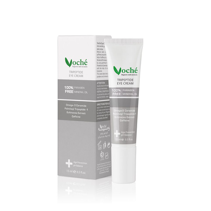اولین نشانههای پیری و افزایش سن در پوست دور چشم دیده میشود. تمام حرکات صورت از جمله اخم، خنده و … در ایجاد چین و چروک دور چشم نقش دارند. میتوان با کنترل این حرکات از افتادن چین و چروک در این نواحی جلوگیری کرد. استفاده از کرم دور چشم از جمله اقداماتی است که از همان سن جوانی سبب میشود تا پیری پوست به حداقل رسیده شود. کرم دور چشم وچه مدل Tripeptide یک محصول فوق العاده حاوی کافئین، روغن آووکادو، سرامید و امگا ۳ است.