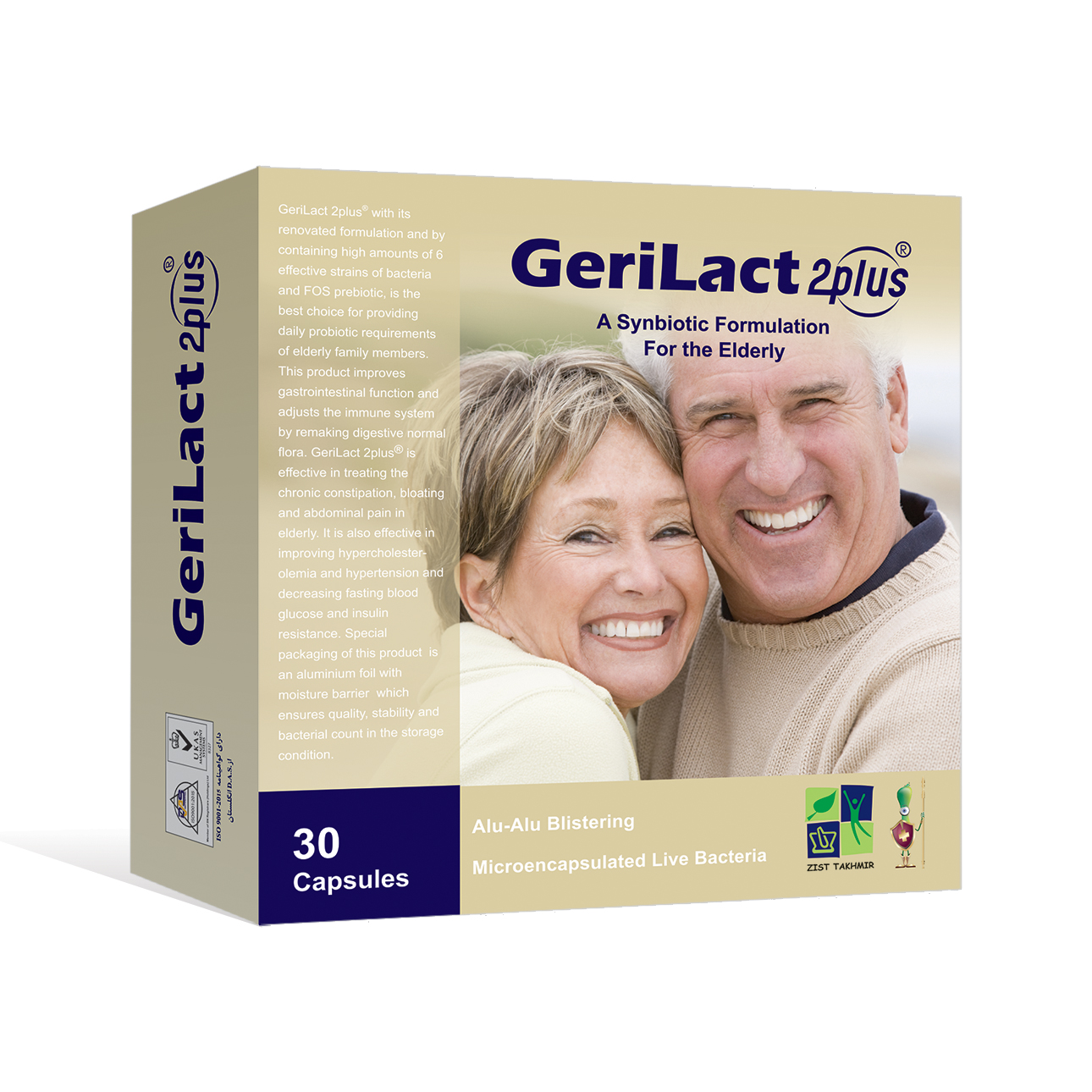 ژری لاکت توپلاس® با فرمولاسیون جدید و بهره گیری از مقادیر بالایی از 6 سویه باکتری مفید به همراه پری بیوتیک فروکتوالیگوساکارید، بهترین گزینه برای تامین پروبیوتیک روزانه برای سالمندان گرامی است. این فرآورده با بازسازی فلور نرمال گوارشی، باعث بهبود عملکرد دستگاه گوارش و تعدیل سیستم ایمنی می گردد. ژری لاکت تو پلاس® در رفع یبوست های مزمن، نفخ و دردهای شکمی در سالمندان موثر است. همچنین در کنترل فشار خون و چربی خون بالا و کاهش قند خون ناشتا و مقاومت به انسولین نقش دارد. بسته بندی خاص این محصول، سد مقاومی در برابر نفوذ رطوبت بوده و باعث تضمین کیفیت، پایداری و حفظ تعداد باکتری ها در شرایط نگهداری می شود.