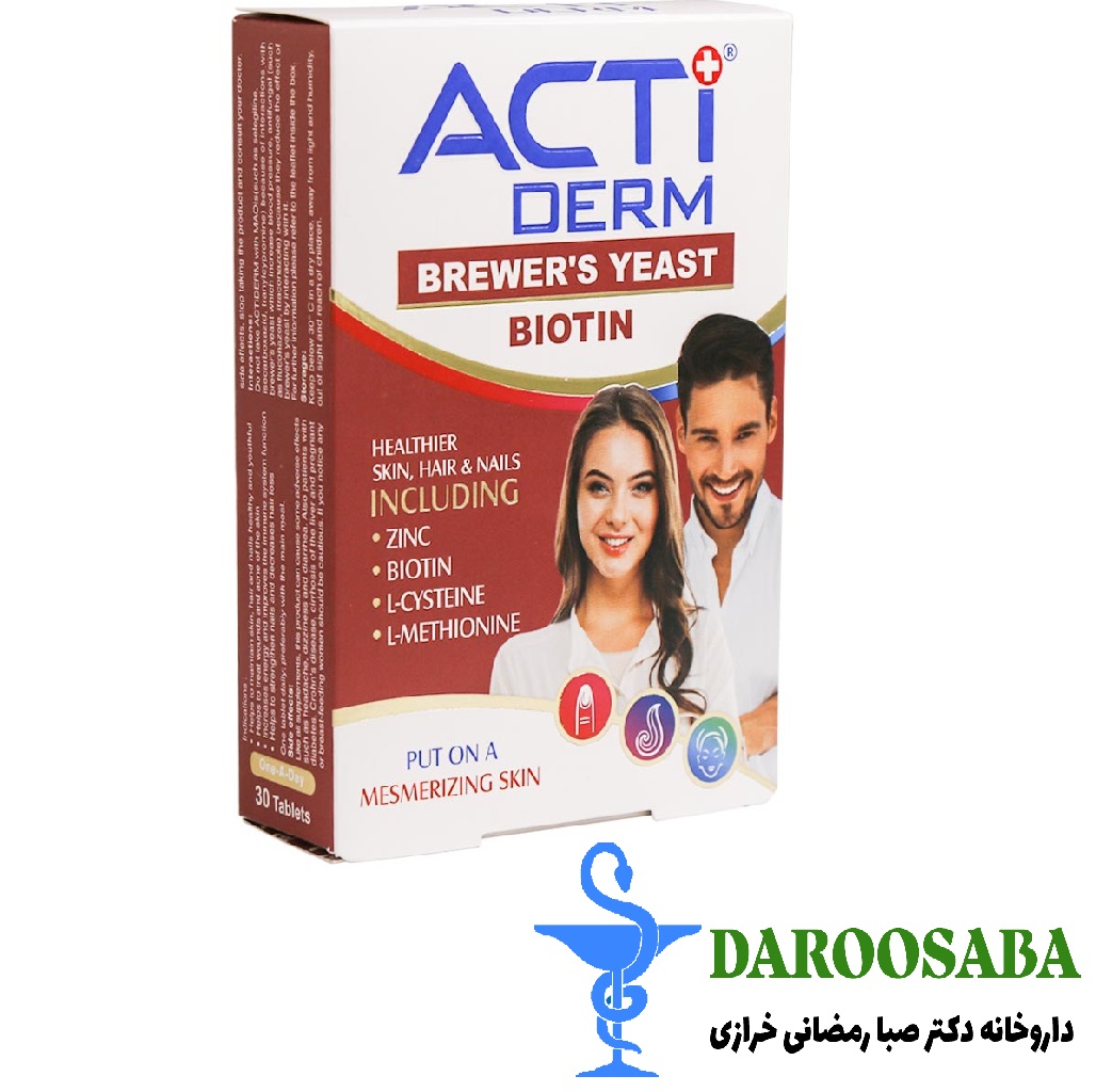 فرمولاسیون قرص اکتی درم لیبرتی شامل ترکیبی از مخمر آبجو، زینک، بیوتین، اسید آمینههای ال سیستئین و ال متیونین است. اکتی درم سبب جوانسازی پوست، سلامت مو و تقویت ناخنها میشود. ترکیبات موجود در این محصول به صورت مستقیم و یا غیر مستقیم نقش خود را در سلامت پوست، مو و تقویت و بلند کردن ناخن ها ایفا کرده و علاوه بر این میتوانند اثر یکدیگر را تقویت کنند. این محصول تحت لیسانس شرکت لیبرتی سوئیس و دارنده پروانه ساخت شرکت ابیان دارو است. و در شرکت فاران شیمی تولید و بسته بندی شده است. ترکیبات موجود در قرص acti derm لیبرتی به شرح زیر است.