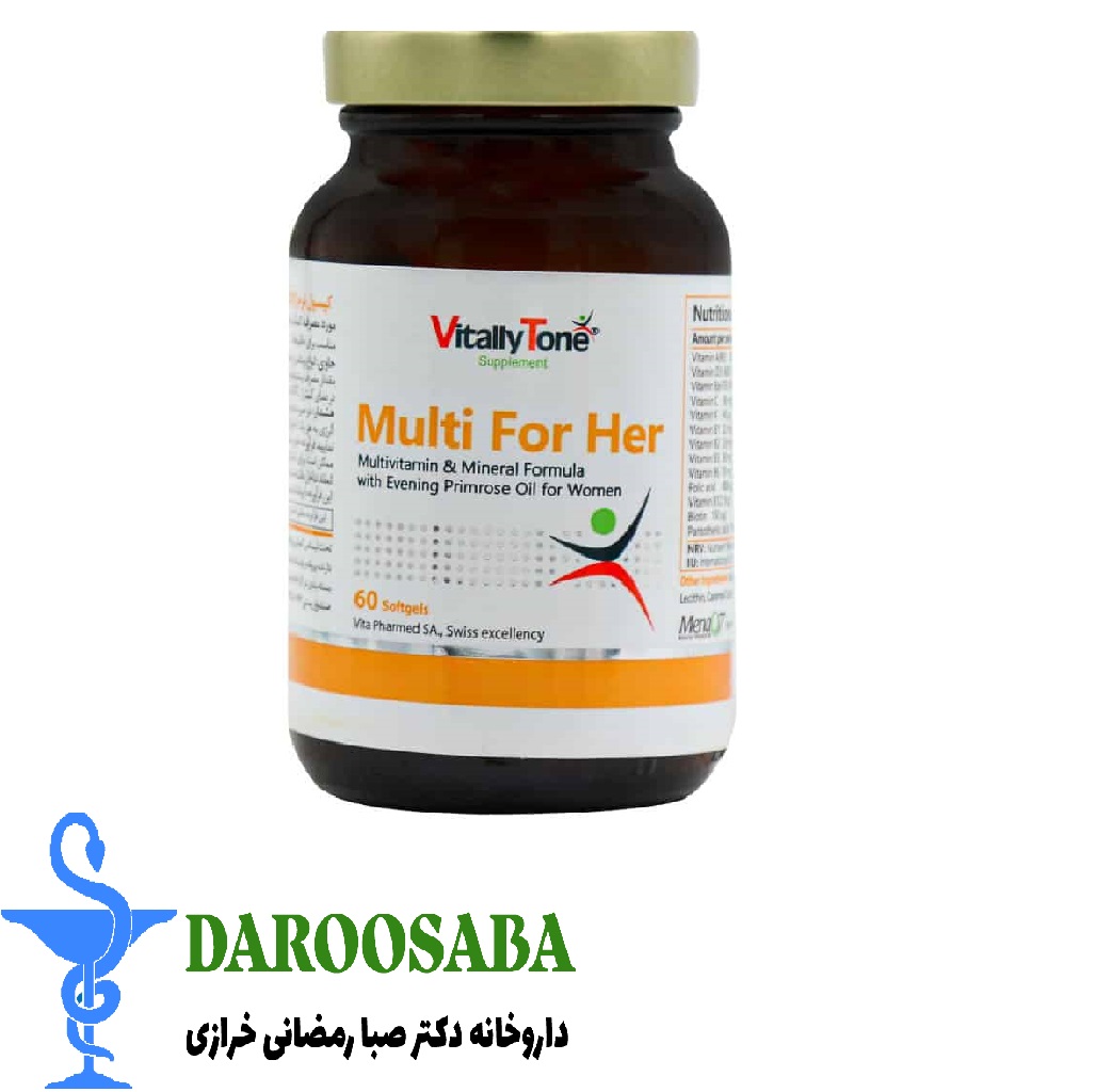 سافت ژل مولتی فور هر ویتالی تون مخصوص خانم ها مکملی اختصاصی برای حفظ سلامت زنان است. این مولتی ویتامین حاوی روغن گل مغربی و کو آنزیم Q10 بوده و کمک میکند تا انرژی و شادابی بدن افزایش یابد. ویتامین B6 موجود در این محصول به تنظیم هورمونهای بدن خانمها کمک میکند. در این سافت ژل آهن و فولیک اسید نیز وجود دارد که سبب پیشگیری از علت کم خونی فقر آهن در زنان میشود. دوز تعیین شده برای مصرف مولتی فور هر ویتالیتون 2 عدد سافت ژل در هر روز است. همان طور که عنوان شد در سافت ژل مولتی ویتامین مینرال ویتالی روغن گل مغربی نیز موجود است که در ادامه به توضیح در مورد آن میپردازیم.