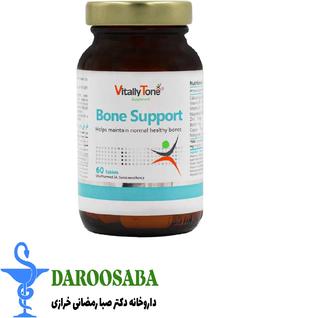 قرص بون ساپورت ویتالی تون یک مکمل ایده آل حاوی کلسیم سیترات، ویتامین D3، ویتامین K1، منیزیم، زینک، بورون، مس و منگنز جهت حفظ سلامت استخوانها است. کلسیم موجود در این محصول از برند ویتالیتون از نوع سیترات بوده که دارای کمترین عوارض کلیوی و گوارشی است. علاوه بر آن برای پیشگیری از پوکی و شکستگی استخوان استفاده میشود.