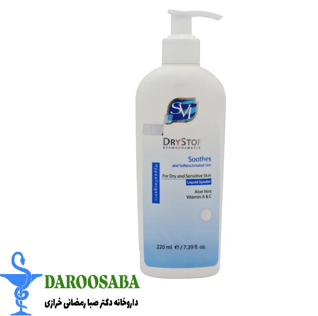 پن مایع غیرصابونی درای استاپ اس وی آی محصولی از برند معتبر SVI است که برای شستشوی پوستهای خشک و حساس کاربرد دارد. مایع پاک کننده Dry Stop غیرصابونی و بسیار ملایم بوده و فاقد هرگونه مواد قلیایی و سازگار با PH طبیعی پوست است. این محصول به عنوان محافظ تعادل پوست عمل کرده و از کمآبی و آسیب پوست جلوگیری مینماید و همچنین موجب تقویت لایه دفاعی پوست در هنگام تمیزی آن میشود. پن مایع Dry Stop اس وی آی حاوی عصاره آلوئهورا و ویتامینهای A و C است و 220 میلی لیتر حجم دارد بنابراین تا مدت زیادی میتوانید از این شوینده پوست استفاده کنید و از این جهت کاملا مقرون به صرفه است. پوستهای خشک و حساس هرگز نباید از صابون و مواد قلیایی برای شستشوی پوست خود استفاده کنند چون این مواد موجب بیشتر خشک شدن پوست میشوند و در نتیجه ممکن است ایجاد آلرژی یا اگزمای پوستی کنند. مایع پاک کننده Dry Stop را روزی 1 بار و در صورت لزوم روزی 3 بار میتوان استفاده کرد.