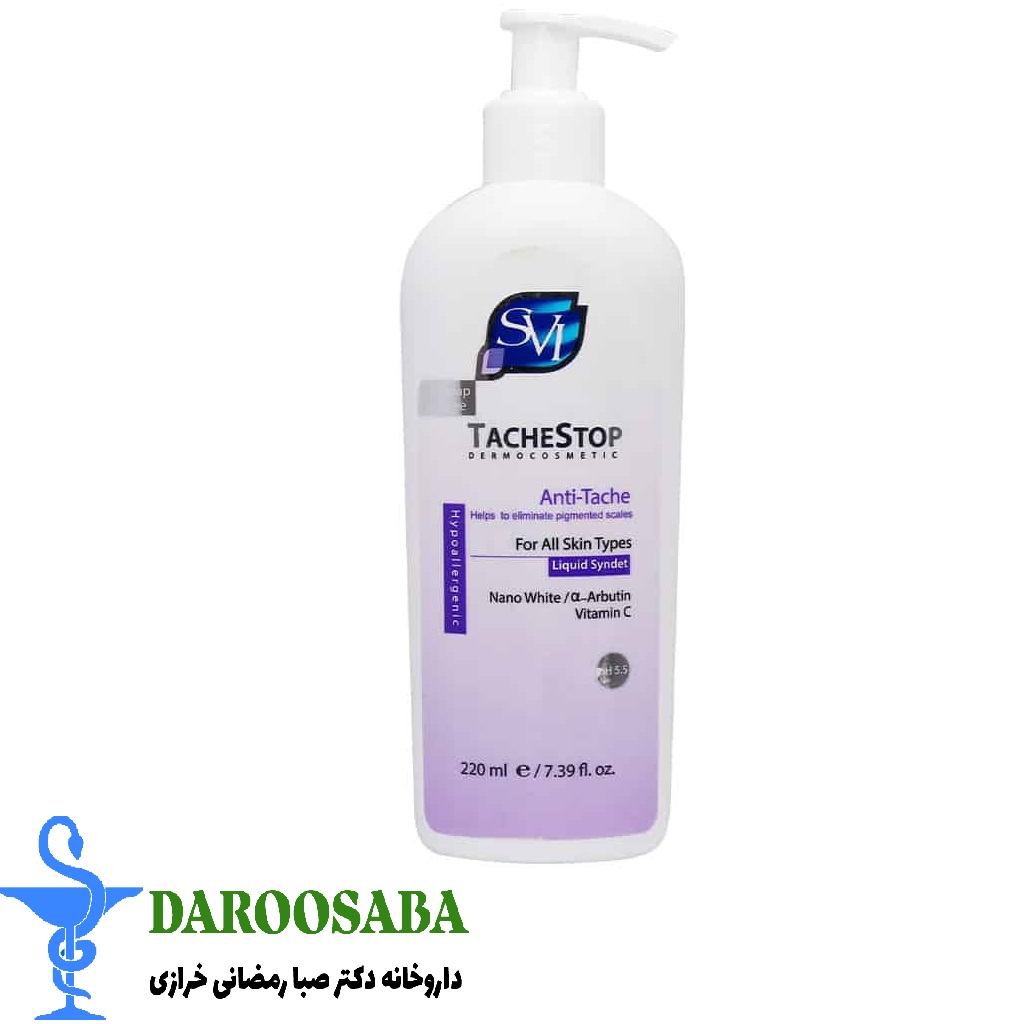 پن مایع روشن کننده پوست اس وی آی مدل Anti Tache یک شوینده ملایم است. همانطور که میدانید شویندههای حاوی صابون ممکن است PH پوست را از حالت طبیعی خارج کرده و نرمی و لطافت پوست را از بین ببرند. اما خوشبختانه پن مایع روشن کننده پوست اس وی آی، فاقد صابون بوده و با PH طبیعی پوست سازگار است. این محصول رنگ پوست را روشن میکند، تیرگیهای پوست را از بین برده و مانع از بروز لک در سطح پوست میشود. پن حاوی قویترین و جدیدترین ترکیبات روشنکننده است که کمک شایانی به افزایش شفافیت و یکنواخت شدن رنگ پوست میکند.