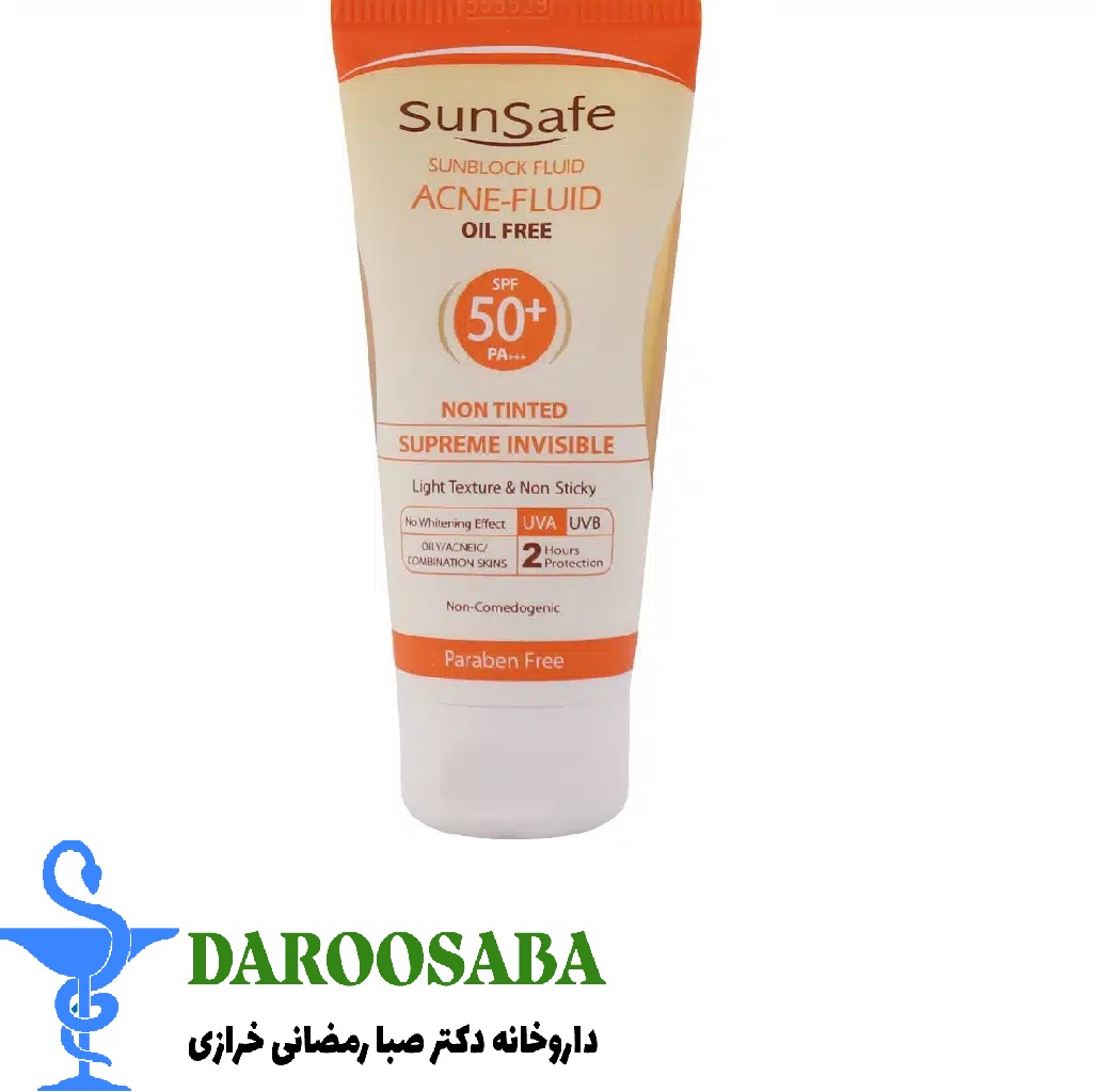 این محصول جذب سریعی دارد و اثر سفیدی روی پوست باقی نمیگذارد و از آن میتوان به عنوان پایه آرایش استفاده کرد. این ضدآفتاب مقاوم به تعریق بوده و فاقد رنگ و پارابن است. فلوئید ضدآفتاب فاقد چربی Sun Safe با SPF50 مانع از تاثیر اشعههای UVA و UVB روی پوست شده و به خوبی از آن محافظت میکند. این محصول فاقد رنگ و پارابن است.