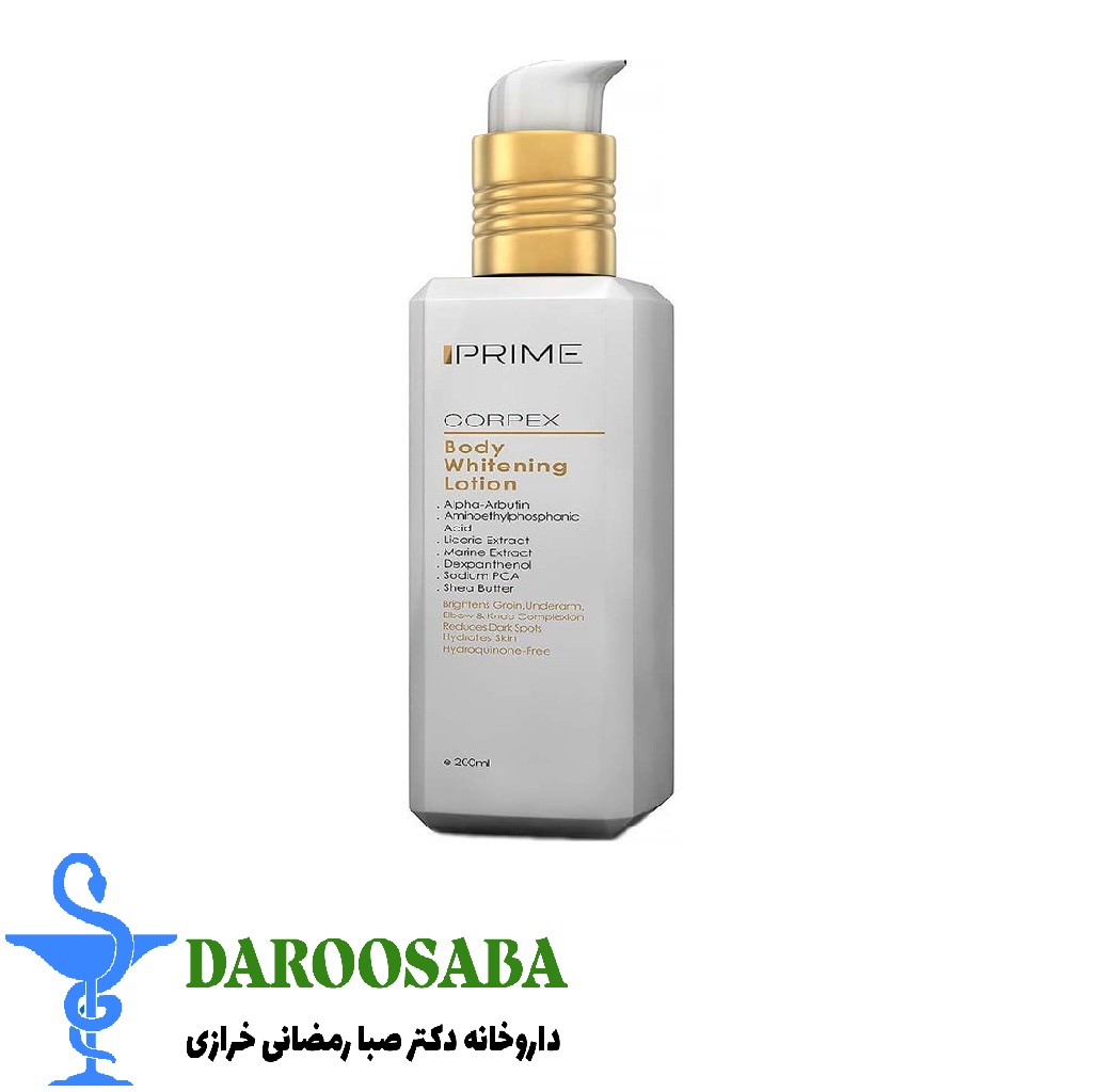 لوسیون روشن کننده بدن پرایم محصولی نوین بر پایه فرمولاسیونی تخصصی و مناسب جهت رفع تیرگی و نواحی زیر بغل، کشاله ران، آرنج و زانو است. این محصول با داشتن ترکیباتی از قبیل آلفا آربوتین، آمینو اتیل فسفونیک اسید و همچنین ترکیبات گیاهی موثر و مرطوب کنندهها بدون ایجاد تحریکات پوستی، لک های ناشی از تابش آفتاب، آکنه، افزایش سن، تغییرات هورمونی و به ویژه لکهای ناشی از بارداری و یا مصرف قرص های ضد بارداری در بانوان را به تدریج محو مینماید.