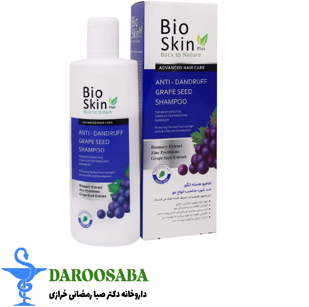 شامپو ضد شوره هسته انگور بایو اسکین از مواد ذکر شده فرآوری شده که باعث آبرسانی به فولیکول های مو و نرم کنندگی و براق سازی و همچنین جلوگیری از ریزش و خارش سر و زدودن آلودگی میشود.همچنین تیم پشتیبانی ما آماده خدمت به شما مشتریان عزیز است.شما با دسترسی به این سایت دیگر نیاز به حضور خود در داروخانه ها ندارید.تمامی برندهای ایرانی و خارجی و محصولات مراقبتی و مکمل در سایت داروخانه دکتر صبا رمضانی با قیمت اقتصادی و مقطوع موجود است.وبلاگ ما در جهت آشنایی و افزایش سلامت و اطلاعات خود،مطالعه کنید