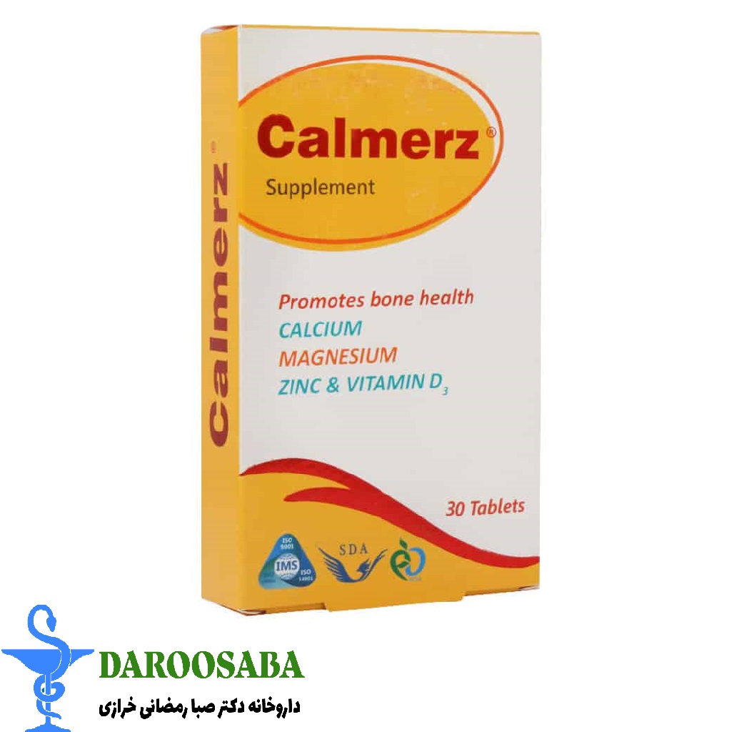 قرص کالمرز calmerz سیمرغ دارو عطار حاوی کلسیم، منیزیم، زینک و ویتامین D3 یک مکمل دارویی است که برای حمایت از سلامت استخوان‌ها و بهبود عملکرد سیستم عضلانی و عصبی مورد استفاده قرار می‌گیرد. مصرف کالمرز به پیشگیری از پوکی استخوان و بهبود سلامت استخوان‌ها و دندان‌ها کمک می‌کند. کلسیم موجود در calmerz به فرم کربنات است که نسبت به دیگر فرم‌های کلسیم، درصد کلسیم المنتال بالاتری دارد. قرص کالمرز توسط شرکت سیمرغ داروی عطار در ایران تولید و به شکل قرص در بسته بندی‌های 30 عددی تولید و به بازار عرضه می‌شود؛ البته قابل ذکر است که در بین برخی از مردم به اشتباه با نام کپسول کالمرز شناخته می‌شود.خرید انواع