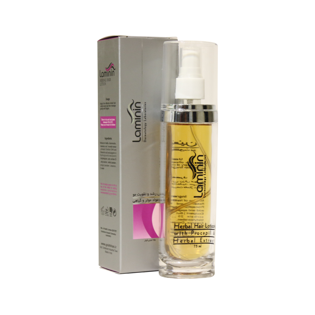 محلول رویش و تقویت موی لامینین حاوی عصاره های گیاهی بابونه، گزنه، دم اسب و رزماری می باشد.